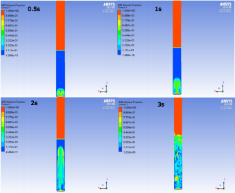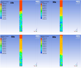 • The transient characteristics of radial gas hold up and axial flow rate of liquid were investigated, by comparing the simulation results of three cases with experimental data.